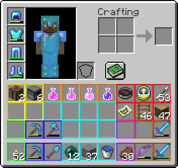 • Tools, armor, music discs, potions, and a few other things do not stack. Keep this in mind when organizing.