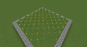 A 11 by 7 farm, utilizing 61 Saplings and 22 torches, with a perimeter walkway.