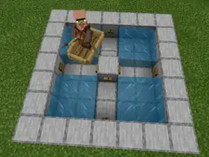 Endless circling moat around a home base, with a villager riding the boat. -
