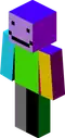 A multicolored, flat figure with a smiley face. | The back of the head is the only side to not be monocolor, with a stripe separating red and slightly orangish red. |