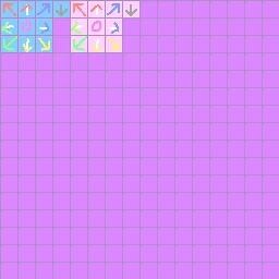 In the 15 June 2010 Infdev release, a texture file named waterterrain.png was added to the jar file. Resembling terrain.png in name, dimensions and the use of similar lilac textures in empty spots, it featured a multitude of different directional symbols.