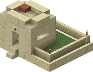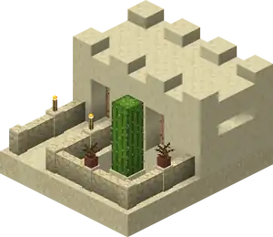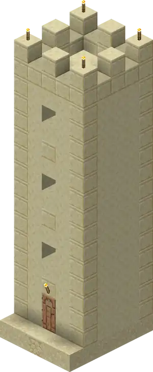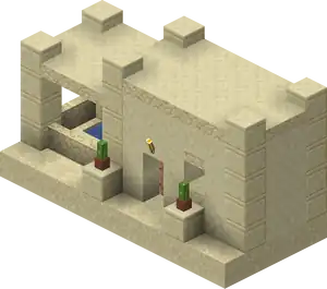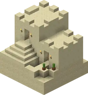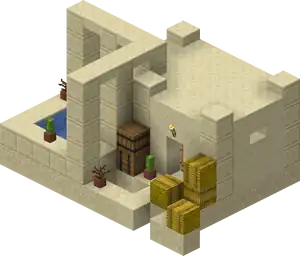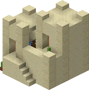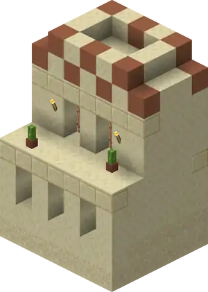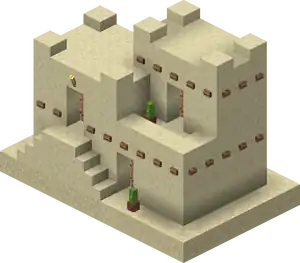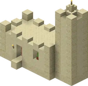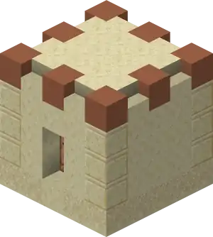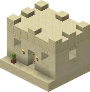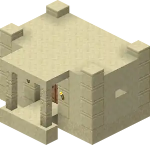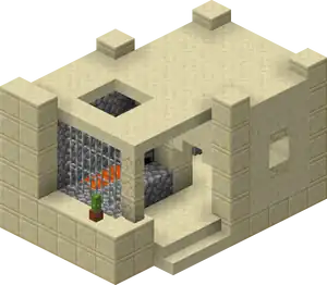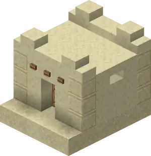 Snowy Villages and Taiga Villages use spruce wood, Savanna villages use acacia wood. There are acacia logs instead of cobblestone in savanna villages except the weaponsmith, church, and around the well. Desert villages have sandstone based variants of all the buildings substituting regular sandstone for cobblestone or wooden logs, and smooth sandstone for wooden planks. Wooden doors and fence posts are still used despite the lack of wood sources. Desert weaponsmiths still use stone slabs on the roof. Also cobblestone in the church, the weaponsmith and around the well is not replaced with sandstone.