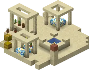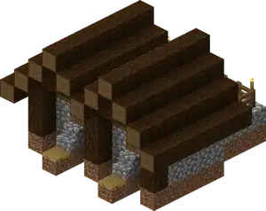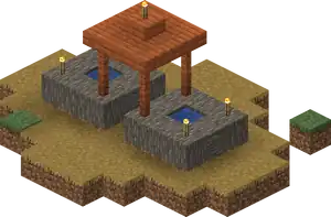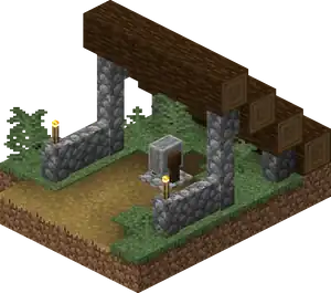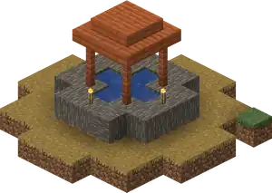 Streets are made with dirt path if replacing grass blocks, planks or (in desert villages) sandstone if replacing water or lava, otherwise gravel with cobblestone under. Streets are 3 blocks wide and lead away from the well in any of the 4 cardinal directions. All streets are straight with intersections at right angles. Streets don’t need to be flat across.
