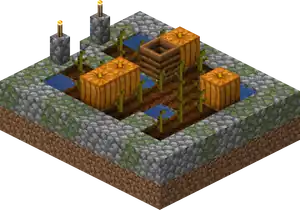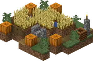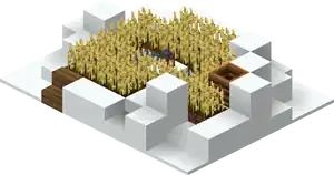 Each farm spawns as one of four types of crops, chosen between wheat, beetroot, carrot, or potato. In Java Edition the crops that generate on a village farm spawn as seeds, while in Bedrock Edition they spawn as full-grown crops.