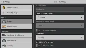| Multiplayer Game | Shows whether multiplayer is enabled in this world, but can't be changed. | ON |
