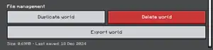 | Opens a message with the option to delete the world. | |