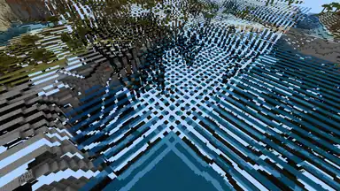 | An "infinite" ocean (consisting of a layer of water atop a thick bedrock column) extends past the world boundary rather than being just void. Where this ocean truly ends is unknown, and if said ending is intentionally programmed is also not known. Interestingly, this used the old water texture even when water itself was updated to have a newer texture. | |||||||