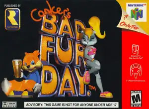 Released in 2001, Conker's Bad Fur Day is a platform game created by Rare. The project originated as Twelve Tales: Conker 64, a conventional "cutesy" platforming game, however following initial feedback the game was overhauled into a raunchy comedy aimed at adult audiences. The final release follows Conker, a cynical alcoholic squirrel who awakens in the Panther Kingdom after a hangover, and has to go on an adventure home or else risk becoming the leg of a table. The game received critical acclaim for its sense of humor, but ended up underperforming due to releasing late into the lifespan of the Nintendo 64.