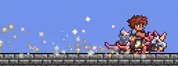 • Using an Umbrella or Djinn's Curse with this mount will cause the player to glide through the air at significant speeds, allowing the player to move long distances quickly when jumping from a high ledge.