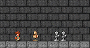 The Bee Keeper attacking a Target Dummy, while inflicting the Confused debuff and summoning bees upon hitting a Skeleton.