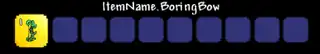 The Boring Bow is an unimplemented item. It has no name set and will thus display as "ItemName.BoringBow". No other stats, behaviors, or associated projectiles exist for this item.