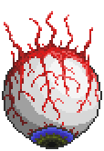 L'occhio di Chtulhu si muove come un normale boss e si scaglia contro il giocatore. Dopo avergli tolto metà della vita, il bulbo oculare diventerà una bocca famelica.