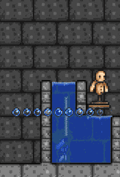 When selected, the Breathing Reed is held above the player. This slows down the rate at which their breath meter depletes, and halves the rate at which they lose health while drowning. The reed's tip does not need to be above the surface of the water for this to take effect. The player's breath meter refills as soon as the tip of the reed is outside of water, but not within a block.