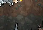 The Cavern layer is the largest layer of the world, beginning just below the Underground and extending down until the Underworld layer. Darker stone background tiles characterize it. Stone is the predominant block in this layer (as opposed to Dirt in the Underground), with frequent patches of Dirt, Silt, and Mud. Caverns contain occasional Underground Cabins where valuables can be found, as well as Glowing Mushroom biomes, mini-biomes like the Spider Nest, and occasional traps. In the lower areas of the Cavern layer, pools of lava can be found.