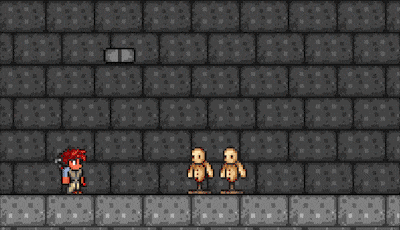 Target Dummies with the Combat Wrench. Note how the wrench returns immediately when hitting blocks.
