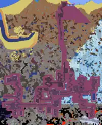 The Dungeon is a vast underground labyrinth made up of Bricks that is generated on world creation, being located on either the far right or left of the map, and contains unique, mostly skeletal enemies whose spawn rates increase the deeper a player travels. It begins at an above-ground entrance structure resembling a castle, and extends down to near-Underworld depths. One Dungeon is generated in each world. Accessing the Dungeon requires first defeating Skeletron (see Access below). The Dungeon can appear in one of three Dungeon Brick colors, and with one or more Dungeon Brick Wall patterns, which is randomly generated at world creation.