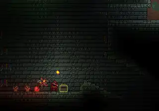 The Dungeon contains a dense assortment of unique furniture and Mechanisms that can be retrieved by the player for later use. Several Dart Traps are Wired to Pressure Plates, providing an extra hazard to players. Traps like these can also sometimes be found above-ground at the Dungeon's entrance. Chain Lanterns are wired to Switches, which the player can toggle on and off. The bound Mechanic is also found here, and is freed when spoken to.