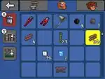 Mobile version. Items appear on the bottom screen, while an item's statistics will appear on the top. The top ten slots of the inventory will be brightened, indicating items in these slots will appear in the Quick Inventory. Items can be thrown away with