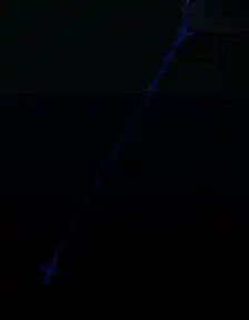 A Slime Hook colored with Glowing Mushroom dye, in the dark.