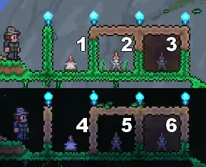Desktop 1.4.4.9 source code, method InAPlaceWithWind()inTerraria.WorldGen.cs. - ↑ Information taken from the