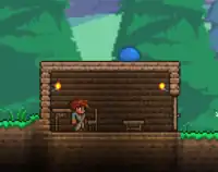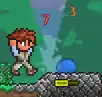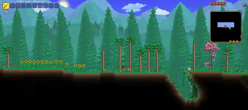 Let's say you explore your surface in search of other biomes. As you travel, it's worth it to break vegetation and see what you can get; each biome has some Herb that's used in Potion recipes, and you harvest them with any weapon. If you encounter enemies on the surface, you can try jumping over them, but this can be difficult depending on the enemy and terrain; platforms and solid blocks can be a great help in getting by enemies, with platforms especially letting you jump between trees. If you hold ⚒ Use / Attack, the platform or block will place as soon as your cursor is in a valid position, making it easier to place blocks as you're moving.