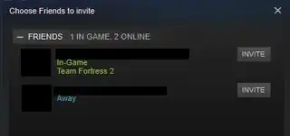 - Click on the 'Invite Friends' button in the middle of the menu. This will open up the Steam overlay with a dialog showing your online friends.