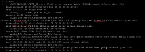 ip addrin the terminal to view your local IP address. You should see something similar to the screenshot.