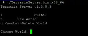 - Using a text editor, create a file in the same directory as the Terraria server file called startserver.sh