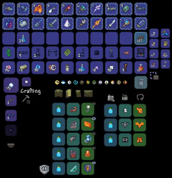 - The trash slot grants an additional inventory slot. An item can temporarily be placed there to make room in the main inventory. Care should be taken, as placing any other item in the trash slot, dying, or exiting the game will delete the contents of the slot.