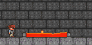 - A shallow lava pit underneath a structure will damage all walking enemies as they attempt to jump towards the player in the structure, and, if shallow enough, will gather their drops in one location for easy collection later. One can also use this technique to upgrade regular pits. Standing underneath the pit will lure most enemies toward the player, with even some flying enemies diving into the lava.