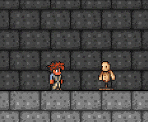 The Blade of Grass attacking and inflicting the Poisoned debuff on a Target Dummy.