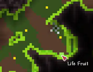 - On the minimap, Life Fruit are 2×2 squares and are a slightly lighter color of green than the rest of the foliage around it. When hovered over, they are labeled as "Life Fruit".
