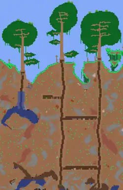 To determine the vertical coordinates of each Living Tree, the game starts at the top true world border at a tree's horizontal coordinate and moves down, ending at the surface layer.