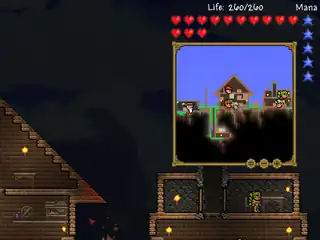 - The minimap in overlay mode can be zoomed in to a 1:1 scale, which can help visibility at night or in caves, or zoomed out to see the location of bosses off-screen (and even far enough to see the entire world).