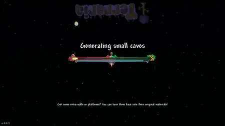 - A star minigame is initiated: reflecting falling stars with the cursor will increase the spawn rate of certain objects and structures during world generation.