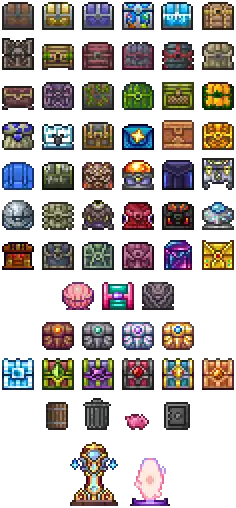 • These can be freed and picked up while they contain items, making them valuable tools for effectively increasing a player's inventory slots.