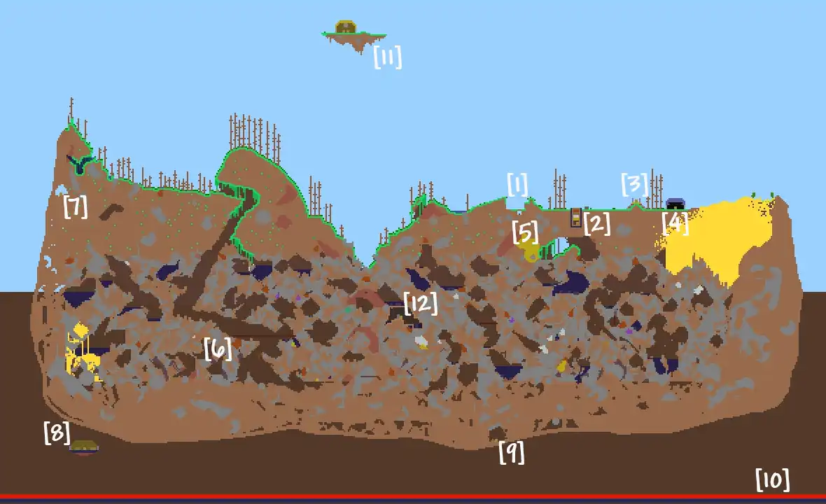 | [12] | There is an Underground Cabin in the middle of the world, containing a Pot Statue, a Slime Statue and a chest with an Aglet, 4 Grenades, 2 Shine Potions, 10 Bottles, and 14 Silver Coins. |