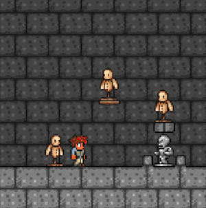 Target Dummies. The explosion from hitting the Skeleton hits the upper Dummy.