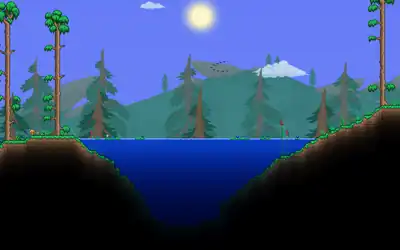 A body of water will also break the player's fall upon impact and negate any fall damage. If the player has the Water Walking buff or one of the accessories that allow walking on water, this will also negate fall damage by landing on the water's surface.