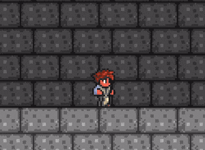 Upon submersion, a player's breath meter will display, indicating their remaining breathing time before drowning damage will be incurred. The point where a player is considered submerged, for purposes of the breath meter, is one pixel above the eyes.